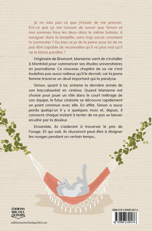 Originaire de Bromont, Marianne vient de s’installer à Montréal pour commencer ses études universitaires en journalisme. Ce nouveau chapitre de sa vie n’est toutefois pas aussi radieux qu’il le devrait, car la jeune femme traverse un deuil important qui la paralyse.